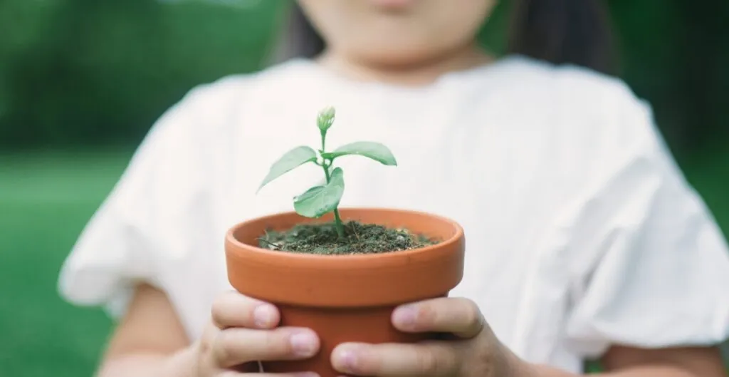 As crianças podem acompanhar o crescimento da planta ao longo dos dias.