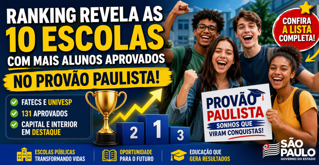 O levantamento divulgado pela Secretaria da Educação de São Paulo mostra quais são as escolas com mais alunos aprovados no provão paulista, revelando unidades de diferentes regiões do estado. O resultado mais recente do Provão Paulista trouxe um dado que chamou atenção de estudantes, famílias e educadores: algumas escolas estaduais se destacaram pelo alto número de aprovados para as turmas do segundo semestre de 2026 nas Fatecs e na Univesp.